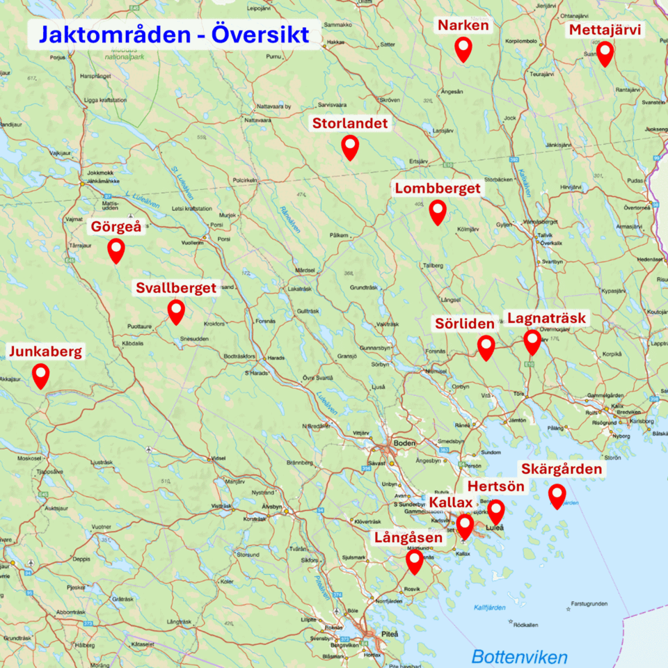 Här får du en överblick över alla våra jaktområden,